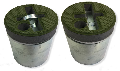 Turf Anchors do not change any of the playing field characteristics. They stay in place even when the goals are on or off the field. They become part of a synthetic or natural grass field. An integral padded cushion top allows play when goals are stowed for other uses. The included rugged steel wire cable may also be used with the padlock to secure the goals to fences or other immovables during maintenance periods or stored during off-season.